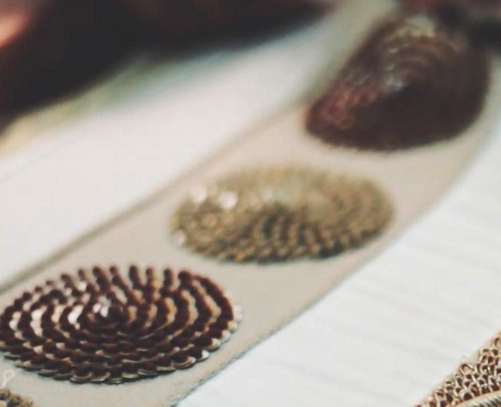 Her collection work for the premiere passementerie company, Samuel and Sons, is what inspired her to create her own line of jewelry and accessories under her own brand.